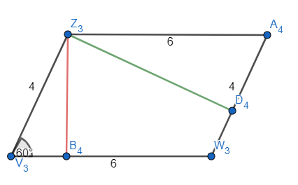 Narysuj równoległobok, którego boki wynoszą 4 cm i 6 cm, a kąt między nimi 60°, a następnie dorysuj i zmierz jego wysokości.