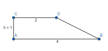 Narysuj trapez prostokątny, którego podstawy będą miały 4 cm i 2 cm, a jego wysokość 1 cm.