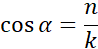 Cosinusem kąta α nazywamy stosunek długości przyprostokątnej leżącej przy kącie α do długości przeciwprostokątnej.