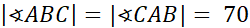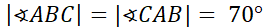 180˚ - 70˚ - 70˚ = 40˚ = DAB