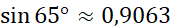 sin 65˚ + cos 65˚ = 0,9063 + 0,4226 = 1,3289