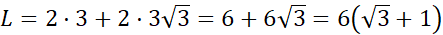 W tym zadaniu oblicz, jaki obwód ma prostokąt, którego przekątne mają długość 6 i przecinają się pod kątem 60°: