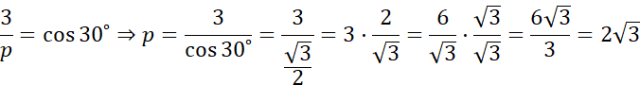 |AB| = |AC| = x. Wyznacz tą długość korzystając z funkcji cosinus. Cosinusem kąta α nazywamy stosunek długości przyprostokątnej leżącej przy kącie α do długości przeciwprostokątnej.