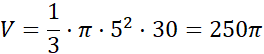 Oblicz objętość stożka o wysokości 30 cm i promieniu podstawy 5 cm.