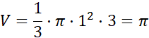 Oblicz objętość stożka o wysokości 3 cm i promieniu podstawy 1 cm.