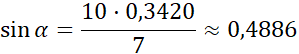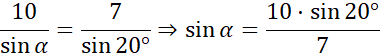 Oznacz kąt naprzeciwko boku 10 jako α. Skorzystaj z twierdzenia sinusów