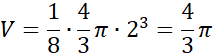 Zauważ, że przedstawiona bryła to ósma część kuli. Objętość kuli wyznacza się ze wzoru