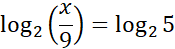 W tym zadaniu określ, co jest rozwiązaniem równania log2 x – log2 9 = log2 5.