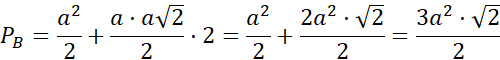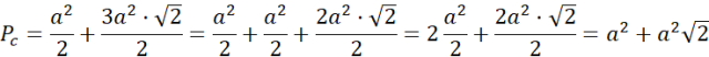 W tym zadaniu określ, ile będzie równe pole powierzchni ostrosłupa przedstawionego na rysunku wiedząc, że jego podstawą jest trójkąt prostokątny równoramienny o przyprostokątnych równych a, a wysokość ostrosłupa jest jedną z krawędzi bocznych i także ma długość a: