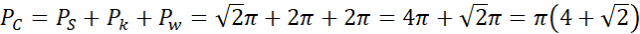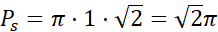 Pole otrzymanej bryły to suma pola powierzchni bocznej walca o wysokości 1 i promieniu podstawy 1, powierzchni bocznej stożka o promieniu podstawy 1 i tworzącej
