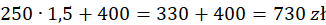 Aby obliczyć koszt wynajmu busa pomnóż odległość przez 1,5 dla trasy o długości do 250 km lub o 1,2 dla trasy od długości powyżej 250 km oraz dodaj 400 zł, czyli dodatkową opłatę niezależną od przejechanych kilometrów.