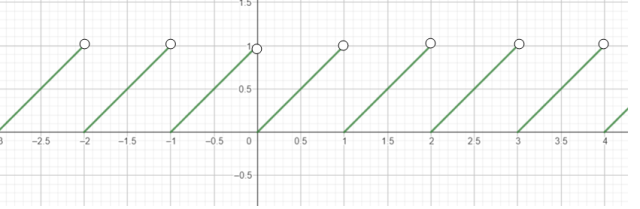 Część ułamkowa dla liczb całkowitych jest równa 0, dla pozostałych liczb rzeczywistych części ułamkowe należą do przedziału (0, 1). Dla k ϵ Z i x ϵ