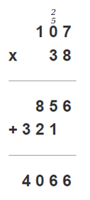 107 · 38 = 100 · 38 + 7 · 38 = 3800 + 266 = 4066