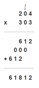 204 · 303 = 200 · 303 + 3 · 303 = 2 · 100 · 303 + 3 · 303 = 60600 + 909 = 61812
