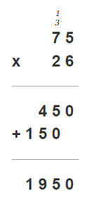 75 · 26 = 70 · 26 + 5 · 26 = 7 · 10 · 26 + 5 · 2 · 13 = 1820 + 130 = 1950