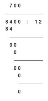 840 : 1,2 = 8400 : 12 =