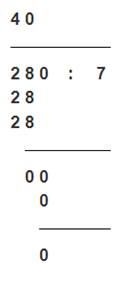 0,28 : 0,007 = 280 : 7 =
