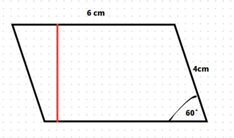 W tym zadaniu musisz narysować równoległobok o sąsiednich bokach długości 4 cm i 6 cm i kącie ostrym między nimi 60˚. Następnie narysuj wysokość tego równoległoboku i oblicz jego obwód