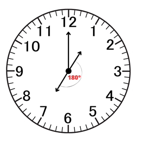 Wskazówki na zegarze leżałyby w linii prostej, czyli utworzyłyby kąt 180˚- półpełny.