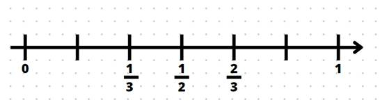 W tym zadaniu musisz nanieść ułamki na oś liczbową, i odczytać wartość ułamka pomiędzy nimi.