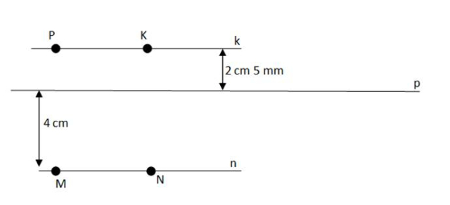 W tym zadaniu musisz narysować prostą p, i zaznaczyć dwa punkty P i K, każdy w odległości 2 cm 5 mm od niej. Następnie zaznacz punkty M i N w odległości 4 cm od prostej p. Przez punkty P i K poprowadź prostą k, a w przez M i N prostą n. Rozważ oba przypadki tej sytuacji.