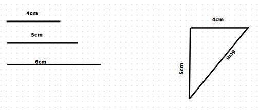 W tym zadaniu musisz narysować odcinki o długościach 5 cm, 6 cm, 4 cm i skonstruować z nich trójkąt.
