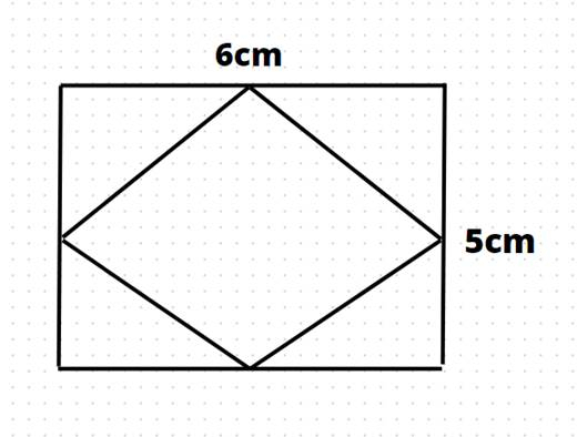 W tym zadaniu musisz narysować prostokąt o bokach 6 cm i 5 cm, oprzeć na jego bokach romb i obliczyć jego pole.