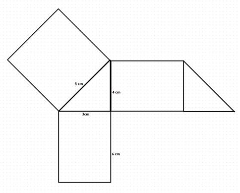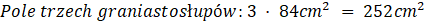 Aby obliczyć, ile papieru zostanie, od pola kartki, należy odjąć pola trzech graniastosłupów.