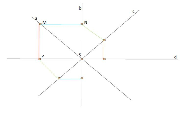 -cztery proste a, b, c, d przecinające się w punkcie S,