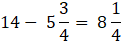 Aby obliczyć długość drugiego boku tego prostokąta, należy od połowy jego obwodu odjąć długość znanego boku. Aby odjąć ułamki o tych samych mianownikach, wystarczy odjąć liczby liczników i zachować ten sam mianownik.