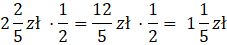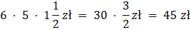 W zadaniu należy pomnożyć ceny za kilogram danych produktów, przez użytą ich ilość.