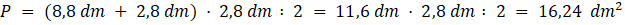 Druga podstawa trapezu: 28 cm = 2,8 dm