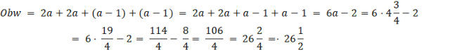 W tym zadaniu musisz napisać równanie opisujące obwód przedstawionej na obrazu figury, a następnie oblicz ten obwód dla a= .
