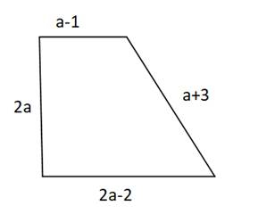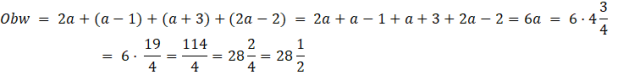W tym zadaniu musisz napisać równanie opisujące obwód przedstawionej na obrazu figury, a następnie oblicz ten obwód dla a= .