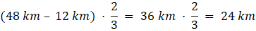 48 km – 12 km – 24 km = 12 km
