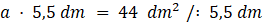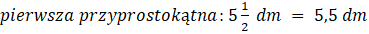 Pole trójkąta prostokątnego jest połową iloczynu jego przyprostokątnych. Pole tego trójkąta należy pomnożyć przez 2, i podzielić przez długość pierwszej przyprostokątnej, aby otrzymać długość drugiej przyprostokątnej.
