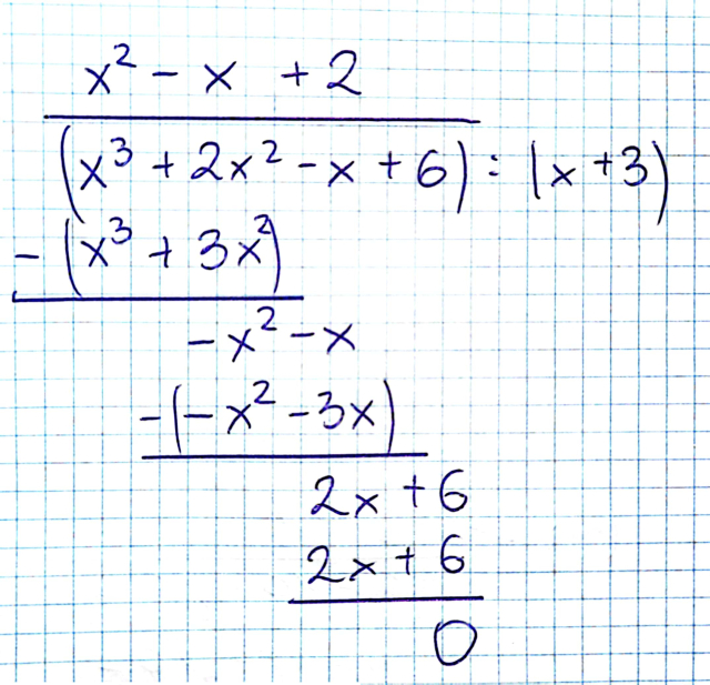 Musisz wykonać dzielenie wielomianu „pod kreską” oraz wybrać poprawną odpowiedź.