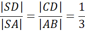Znając stosunek długości podstaw |DC] : |AB| oraz wiedząc, że odcinki |AB| i |DC| są wobec siebie równoległe, możemy zapisać zależność wynikającą z twierdzenia Talesa: