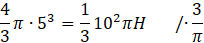 Zaznacz, jaka jest wysokość stożka o promieniu podstawy 10 cm, jeśli ma taką samą objętość jak kula o promieniu 5 cm.