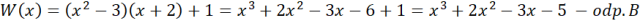 Wielomian, który spełnia wymagania z polecenia to: B. x3+2x2-3x-5