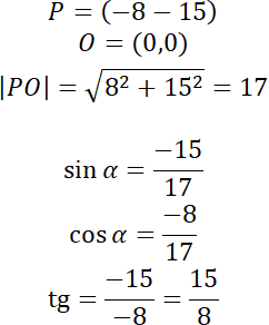 W tym zadaniu masz wyznaczyć wartości funkcji sinus, cosinus i tangens kąta , którego ramię wodzące przechodzi przez punkt