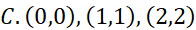 Narysuj w układzie współrzędnych podane punkty i sprawdź które spełniają warunek zadania. Punkty o współrzędnych (0,0), (1,1) i (2,2) leżą w linii prostej względem siebie, co oznacza, że można je opisać funkcją liniową, której wykresem jest prosta, a nie kwadratową, której wykresem jest parabola.