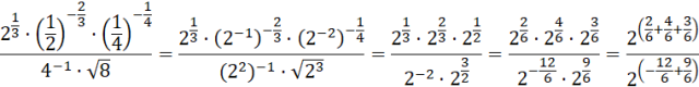 Najpierw doprowadź wszystkie potęgi do postaci potęg dwójki. Następnie wykonaj rachunki na potęgach.