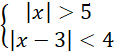 Pierwszą nierówność spełniają liczby, których odległość na osi liczbowej od punktu 0 jest większa niż 5, zatem: