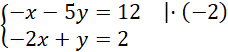 Nie ma współczynników o przeciwnych znakach, więc przekształcamy układ równań tak, by do takiej sytuacji dochodziło: