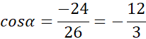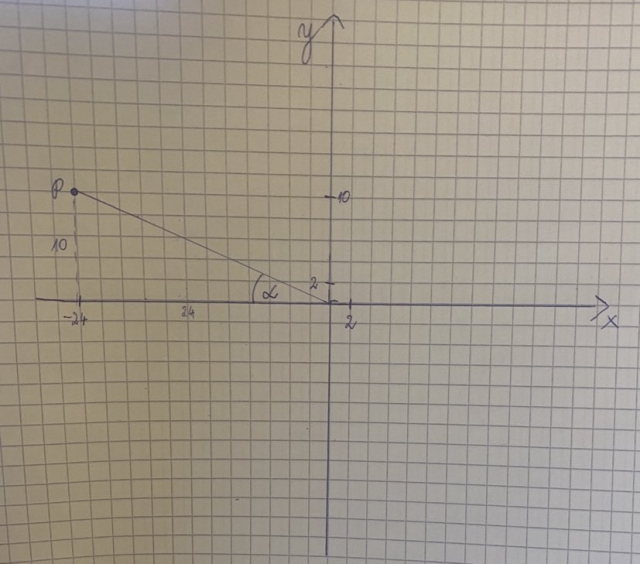 W tym zadaniu rozważ, czy podane zdania są prawdziwe. Wiadomo, że ramię wodzące kąta α przechodzi przez punkt o współrzędnych (-24, 10).