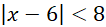W takim razie jest to zbiór punktów, które są bliżej niż 8 jednostek od liczby 6 na osi liczbowej. Korzystając z interpretacji geometrycznej wartości bezwzględnej skonstruujmy na tej podstawie nierówność z wartością bezwzględną: