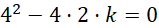 . Oblicz dla jakiego k wyróżnik będzie równy zero. Następnie podstaw wyznaczoną wartość k zauważ do wzoru funkcji. Zauważ, że po wyciągnięciu 2 przed nawias i skorzystaniu z wzoru skróconego mnożenia