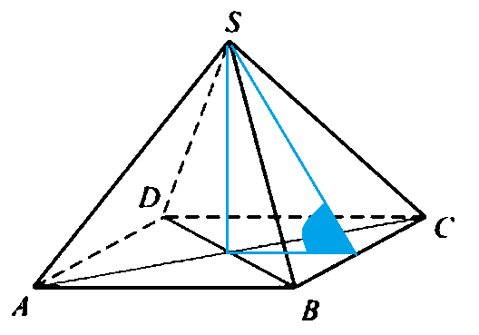 Narysuj ostrosłup prawidłowy czworokątny i zaznacz w nim odpowiednie kąty dwuścienne.