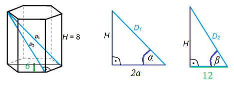 Zauważ, że możesz tutaj wykorzystać twierdzenie Pitagorasa. Graniastosłup sześciokątny prawidłowy ma w podstawie sześciokąt, który składa się z sześciu trójkątów równobocznych. Znając jego wysokość, możesz obliczyć długość krawędzi podstawy takiego trójkąta. Ta z kolei posłuży do wyznaczenia jednej z przekątnych. W drugiej z nich wykorzystaj, że podstawa trójkąta to dwukrotna krawędź wcześniej wspomnianego trójkąta równobocznego.